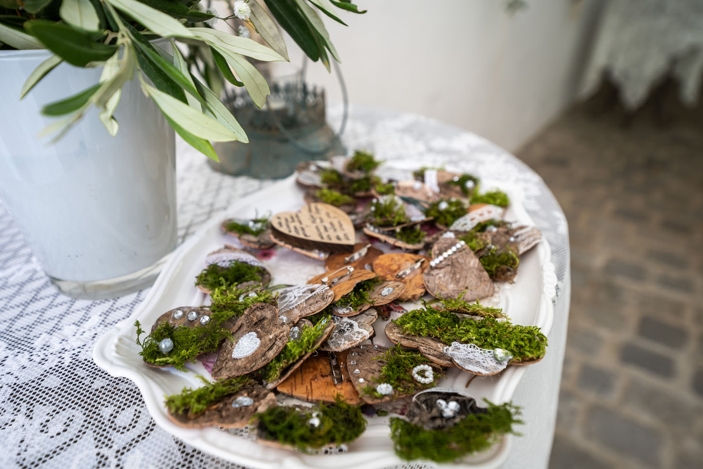 Nach der kirchlichen Trauung ging es direkt in den Garten / Schloßgraben des Schloss Ratzenhofen, der liebevoll gestaltet und dekoriert war. Kleine Häppchen und eine schöne Auswahl an Getränken haben den Sektempfang ganz entspannt und toll gestaltet.